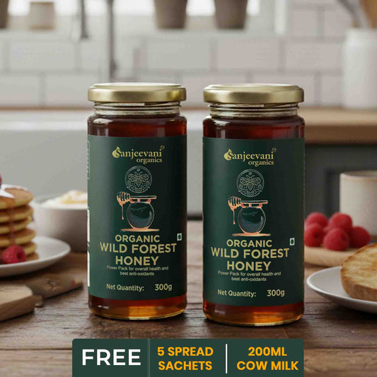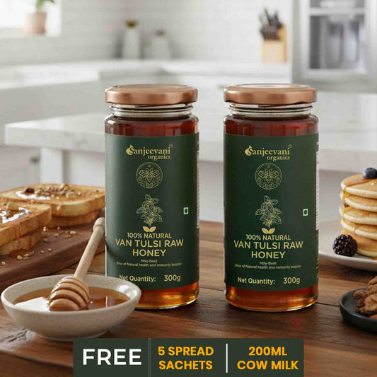 Organic Wild Forest Honey and Van Tulsi Raw Honey (Pack of 2) - Get Free 200ml Milk , 5 Sachets