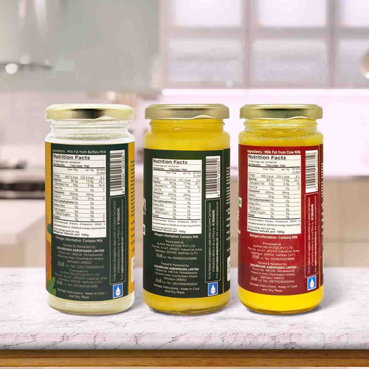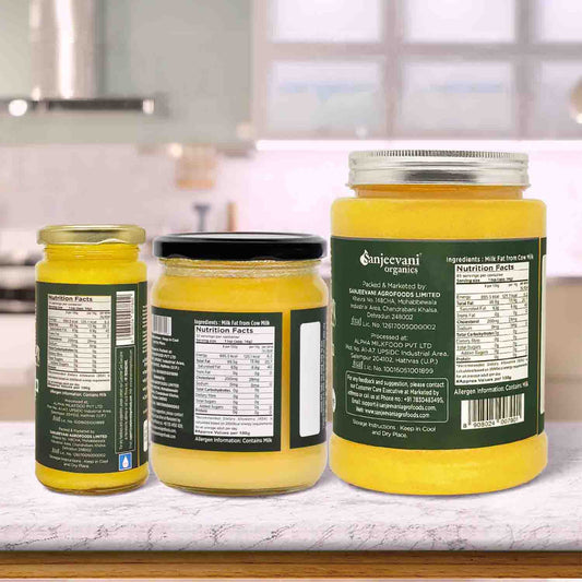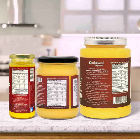 Organic Bilona Cow Ghee - Pack of 3 - 200g, 500ml, 1L