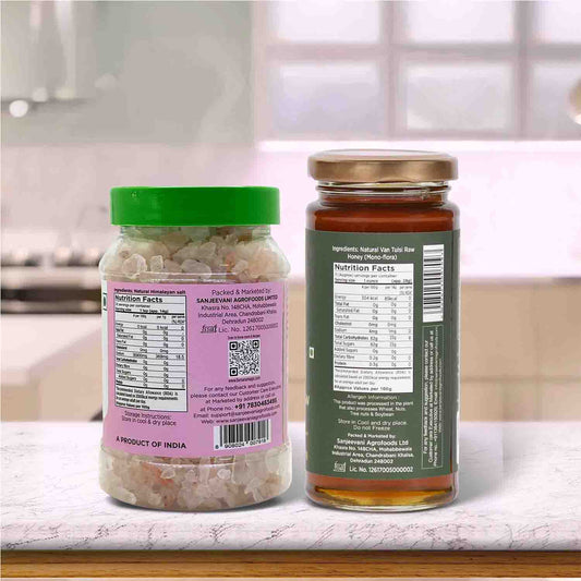 Pink Salt Crystals 400G x 1pc + Natural Van Tulsi Honey 300G x 1pc