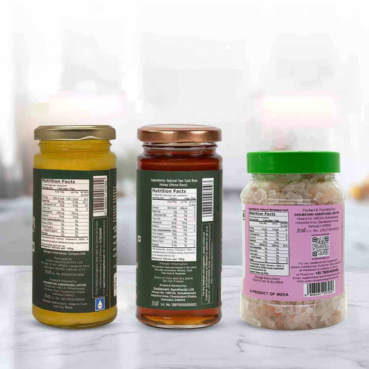 Organic A2 Badri Cow Ghee 200G x 1pc + Pink Salt Crystals 400G x 1pc + Natural Van Tulsi Honey 300G x 1pc