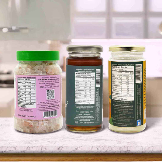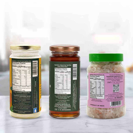 Organic Buffalo Ghee 200G x 1pc + Pink Salt Crystals 400G x 1pc + Natural Jamun Honey 300G x 1pc