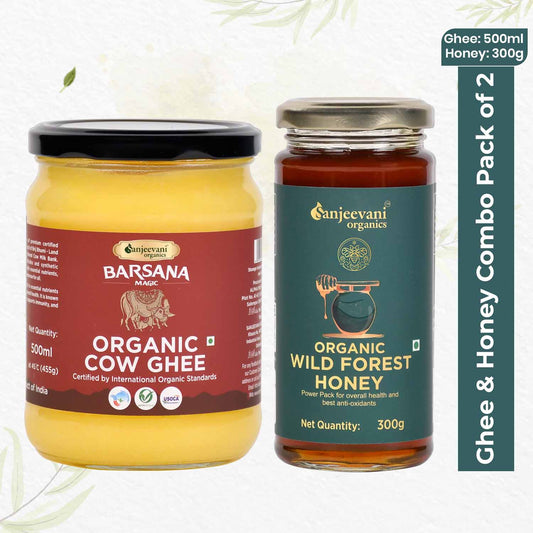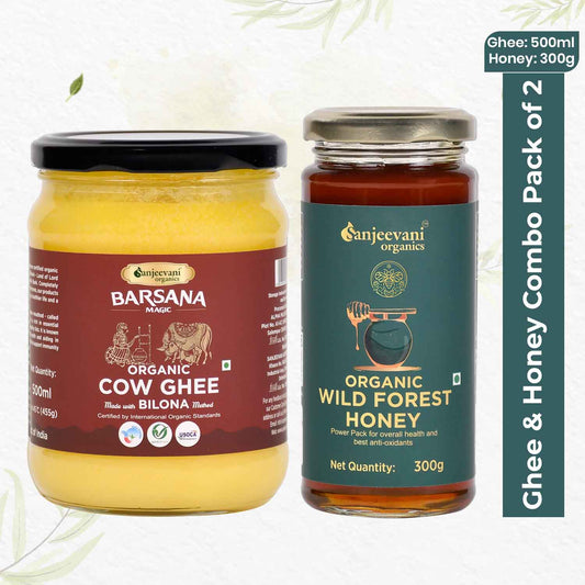 Organic Cow Ghee and Organic Wild Forest Honey (Pack of 2)