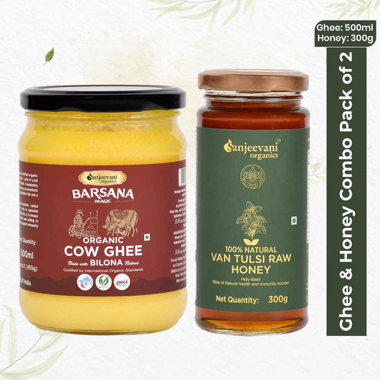 Organic Bilona Cow Ghee and Natural Van Tulsi Raw Honey (Pack of 2)