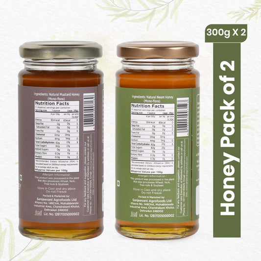Natural Mustard Honey and Neem Honey (Pack of 2) - Get Free 200ml Milk , 5 Sachets