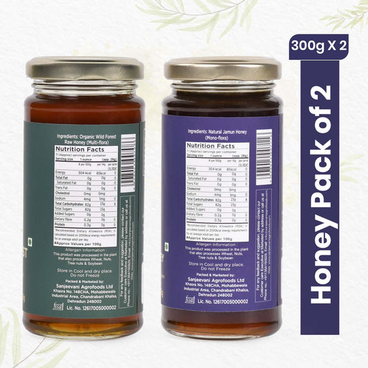 Organic Wild Forest Honey and Natural Jamun Honey (Pack of 2) - Get Free 200ml Milk , 5 Sachets